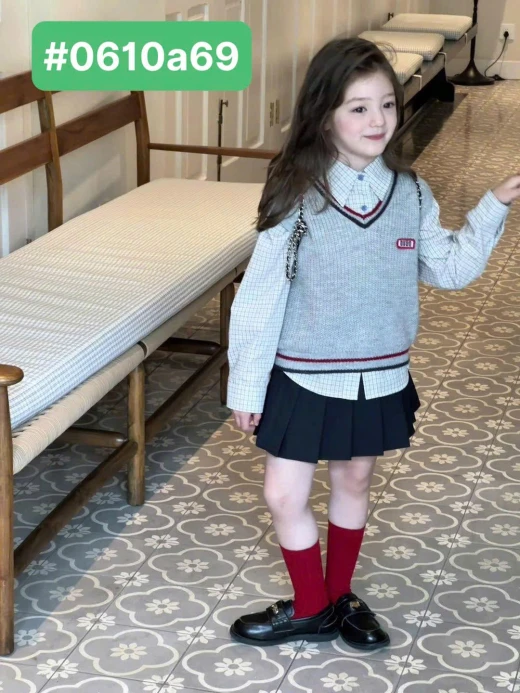 #0610a69 ✅ ✅ SET 3 CHI TIẾT AMBB em lại ngoi lên gom đồ ambb vì chiếc gile xám này quá xinh Gile xám #xxxk Sơ mi kẻ caro #xxk Chân váy #xxxk 🍀 🍀 Sz: 90-150 giá: gile 122k, sơ mi 131k, chân váy 136k Chốt 0610
