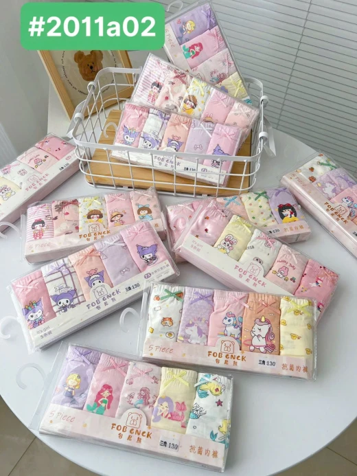 #2011a02 SÉT 5 CHIP TAM GIÁC BÉ GÁI Hình in dễ thương, chất cotton mềm êm lắm ạ. Đến kì thay chip cho bé, em gom chị em mua chung cho rẻ nhaaa. ✔13 mẫu đánh số (số 1 hết 110,180; số 2 hết 110, 130, 140, 180; số 4 hết 130,140; số 5 hết 140-180; số 8 hết 110,140,160; số 9 hết 120; số 12 hết 150-170) ✔Size : 110-180 🌸 giá sz 110-160 giá 126k sz 170-180 giá 134k 🐬 chốt 20/11