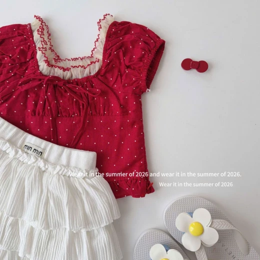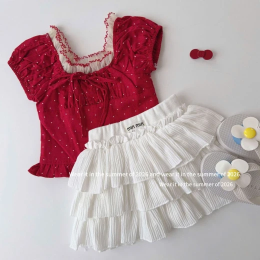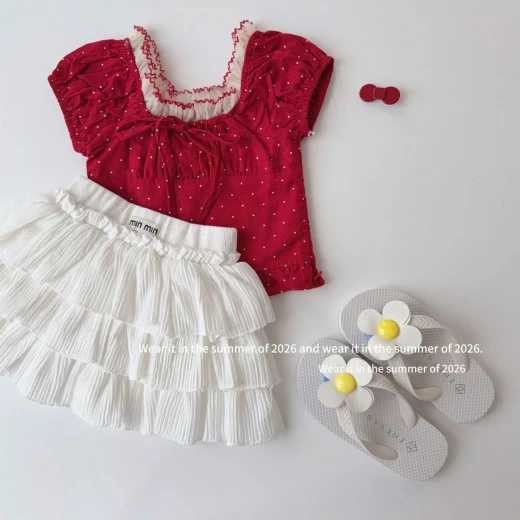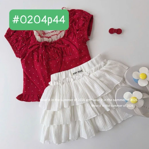 #0204p44 SÉT ÁO ĐỎ MIX CV TRẮNG T&QKIDS ✔áo size : 90-150 ✔cv size 90-160 🌸 giá áo giá 179k cv giá 170k 🐬 chốt 2/4