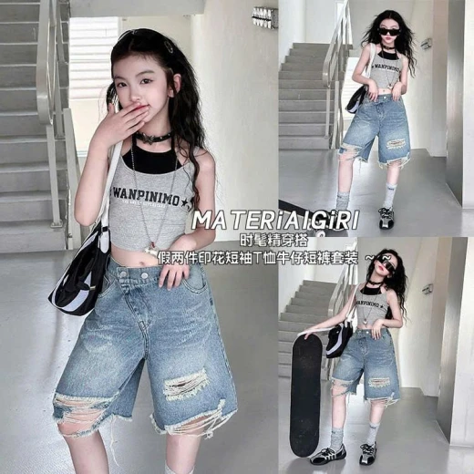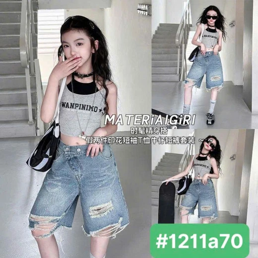 #1211a70 SET ÁO KEM QUẦN JEAN RÁCH BG Hàng hè size đại đẹp mà full sz thế này thì các xốp đừng bỏ qua nhé ạ Áo #xxxk Quần cạp lệch ống rộng dáng A #xxxk Sz: 120-170 Bảng size tham khảo 120: 15-20kg 130: 20-25kg 140: 25-30kg 150: 30-35kg 160: 35-40kg 170: 40-50 kg Giá: áo 124k, quần 168k Chốt 1211