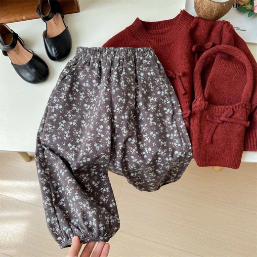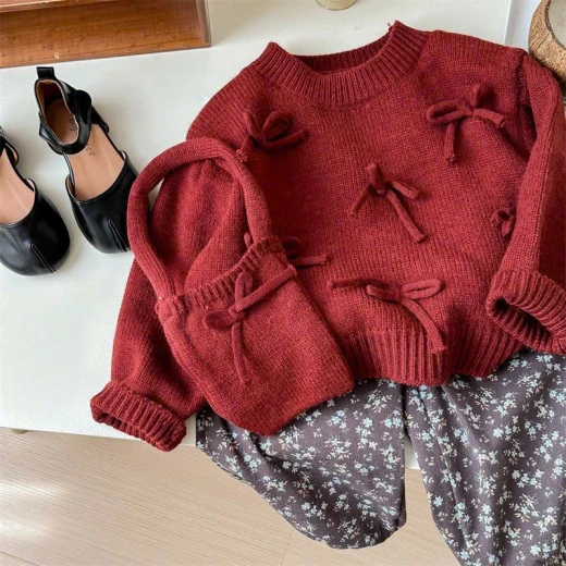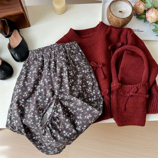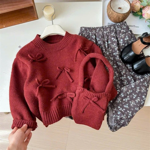 #1112a56 ‼️‼️ SET ÁO LEN NƠ ĐỎ KÈM TÚI MIX QUẦN HỌA TIẾT Sz 90-140 🌸 giá set: 204k áo: 124k quần: 111k 🐬 chốt 11/12
