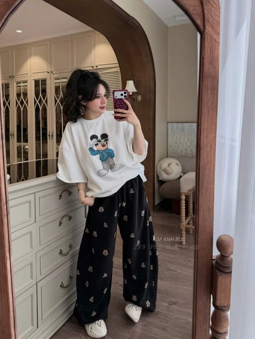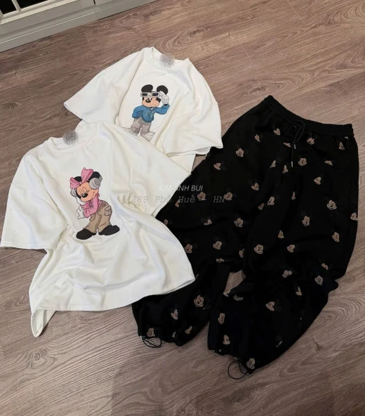 #0203pa03 Đây rồi Gu emmm 🥰 Siu phẩm ce uiii , full set micki iuu lắm ạ ^^ Lần này e chọn áo cho ce dễ mặc đôi luôn, mix quần bo chun còn zì hợp hơn nữa , e có sẵn sl ko nhìuu nên ce nhanh tay thui naoooo 😚 Màu : xanh - hồng ( chọn theo hình in) Size s 40-46kg Size m 47-53kg Size L 53-60kg ☘️Giá: 155k 🐬Chốt 2/3