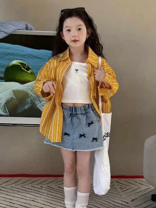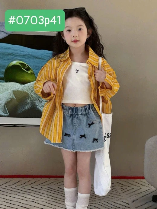 #0703p41 🍋 🍋 SET ÁO SƠ MI CÁCH ĐIỆU BÉ GÁI Toàn mẫu xinhh lên kệ chèn ơi. Chốt chốt nhanhh ạ. Cưng nhắm luônnn. Áo sơ mi cut lưng buộc dây cá tính #xxxk Áo thun nơ dáng ngắn phối đồ năng động #xxxk Chân váy jean đính nơ chưa bao giờ lỗi mốt XXXk Sz: 100-150 Bảng sz tham khảo Size 100 : 13-15kg Size 110: 15–18kg Size 120: 18–22kg Size 130: 23- 27kg Size 140: 28- 31kg Size 150: 32-36kg +#10K Giá: áo vàng 161k , áo thun 98k , váy 182k Chốt 0703
