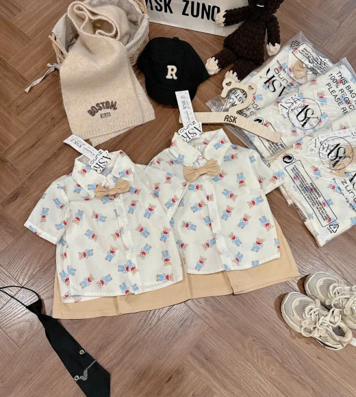 #0203pa04 🤍 SET ÁO SƠ MI + QUẦN KAKI BÉ TRAI – LỊCH LÃM, DỄ MẶC 🤍 👔 Áo sơ mi họa tiết xinh xắn, form gọn gàng 👖 Quần kaki giặt mềm, mặc thoải mái, không cứng, không bí ✨ Phối nơ nhỏ tinh tế, mặc lên rất lịch sự ✔️ Chất vải mềm, thoáng mát ✔️ Bé mặc đi chơi, đi tiệc, chụp ảnh, đi học đều hợp ✔️ Set đơn giản nhưng nhìn rất “xịn” 📏 BẢNG SIZE: • Size 90: 7–9kg • Size 100: 9–11kg • Size 110: 11–14kg • Size 120: 14–17kg • Size 130: 17–20kg • Size 140: 20–23kg • Size 150: 23–25/26kg ☘️Giá: 100k 🐬Chốt 2/3