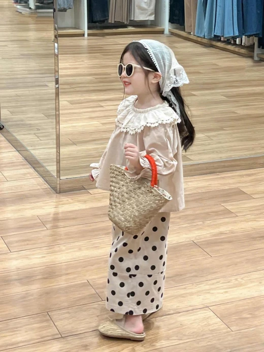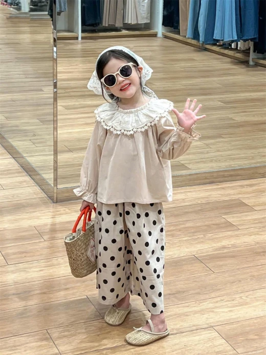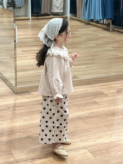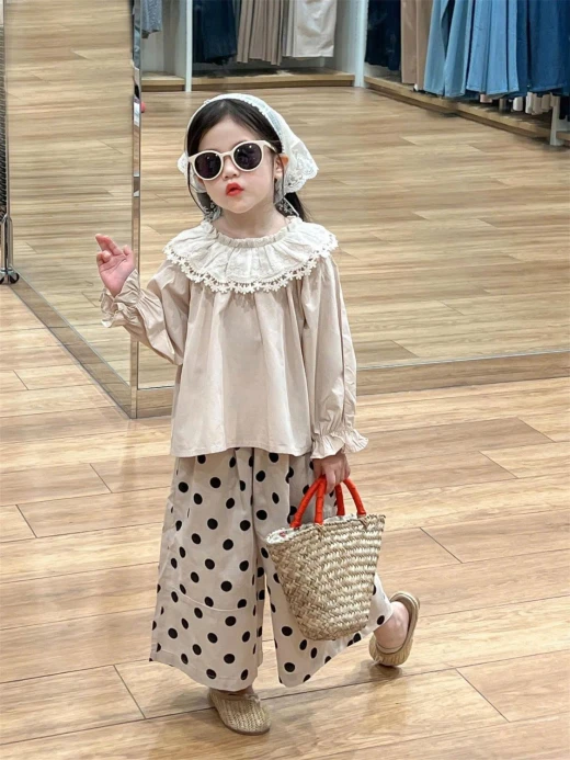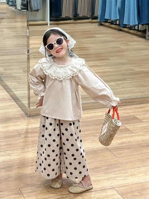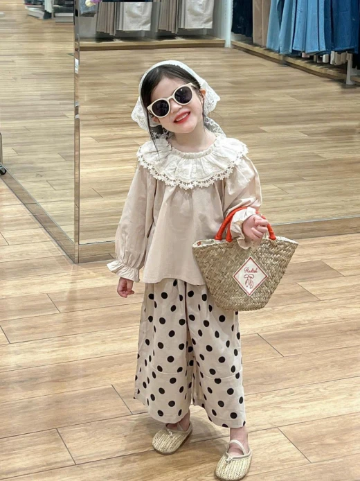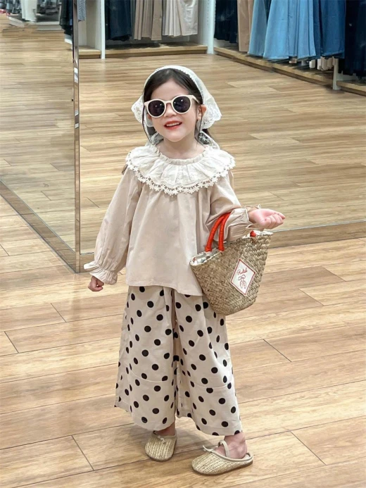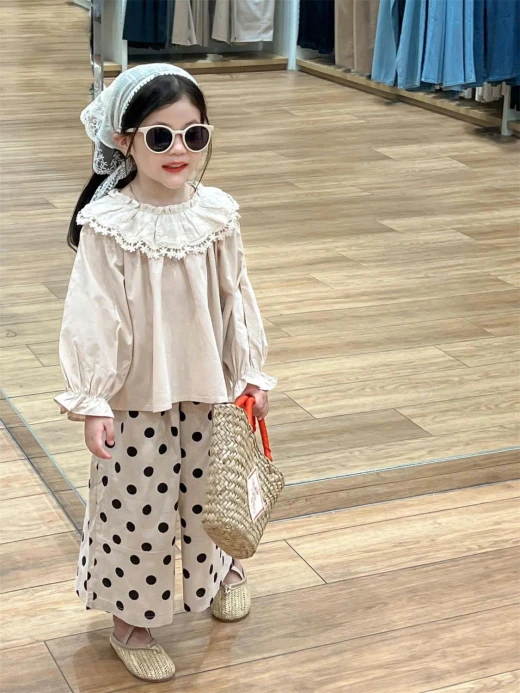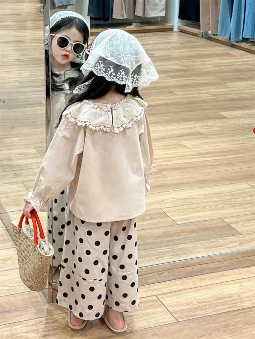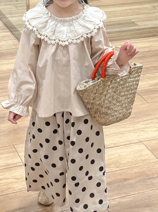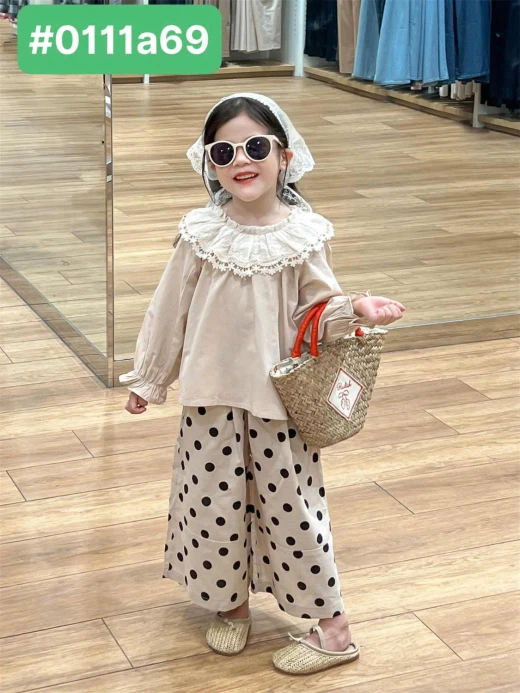 #0111a69 SÉT ÁO THÔ CỔ REN MIX QUẦN CHẤM BI HÀN QUỐC Size : 90-140 🌸 giá áo: 138k quần: 161k 🐬 chốt 1/11