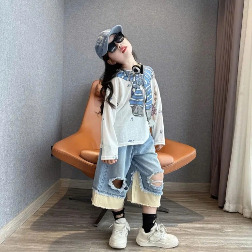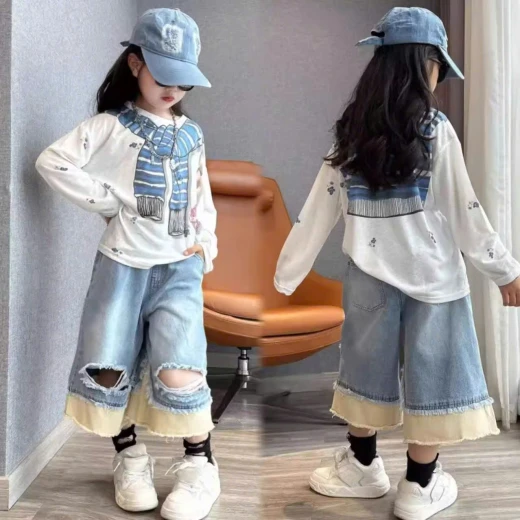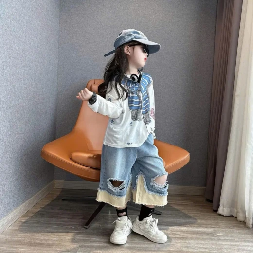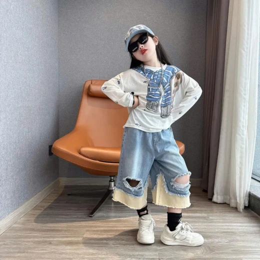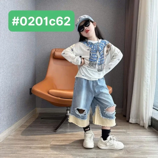 #0201c62 SET ÁO THUN DÀI TAY MIX QẦN JEAN RÁCH PHỐI MÀU Năng động, thoải mái – bé mặc đi học hay đi chơi đều xinh sz 120-170 🌸 giá áo: 195k quần: 180k 🐬 chốt 0201