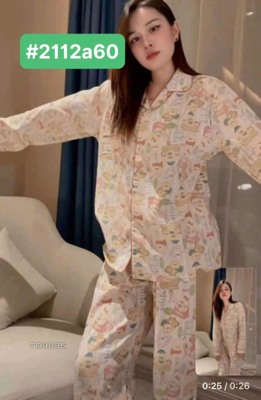 #2112a60 ✅✅✅nghe bảo đag hot nên khách gửi e gom đây ‼️ ‼️Set bộ pijama chất cotton sợi tơ đậu nành mặc siêu thích Bộ này e gom mãi rồi Giờ lại hot e gom nốt chuyến cuối 1️⃣xxk/ bộ luôn 2 màu e đánh số : gấu hồng/ kẻ xanh Lên mẫu đẹp lắm. Shop live đang pán toàn 3-4xx thôi Về với em là chuẩn rồi Sz. M L XL XXL M 40-50kg L 50-55kg Xl 56-65kg Xxl 65-75kg giá 121k/1b chốt 2112