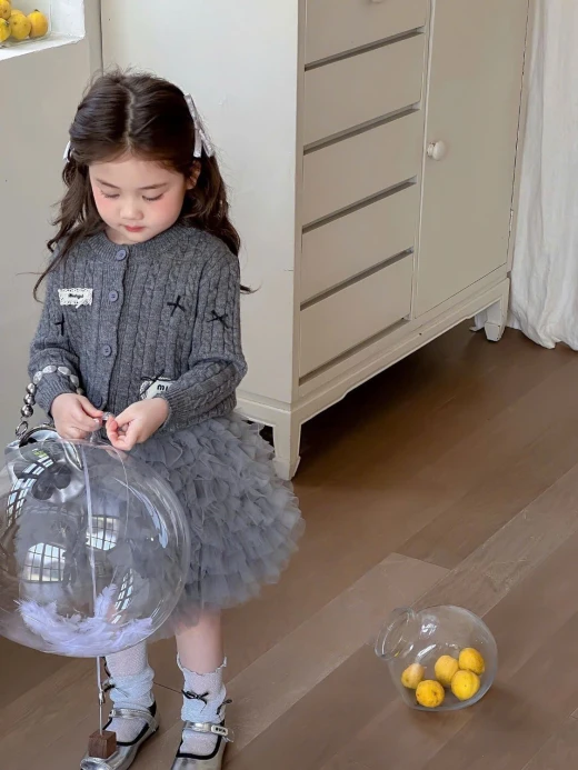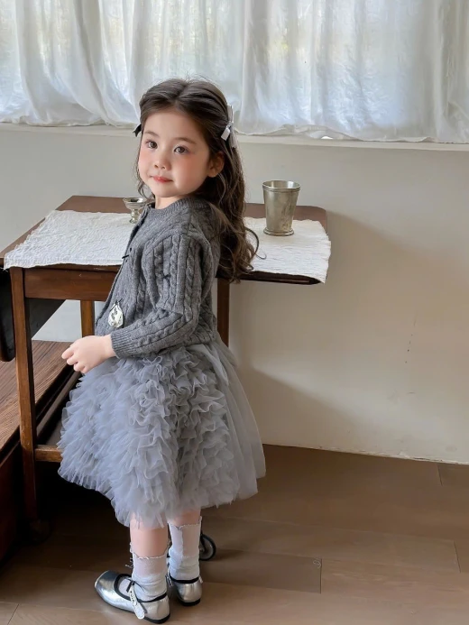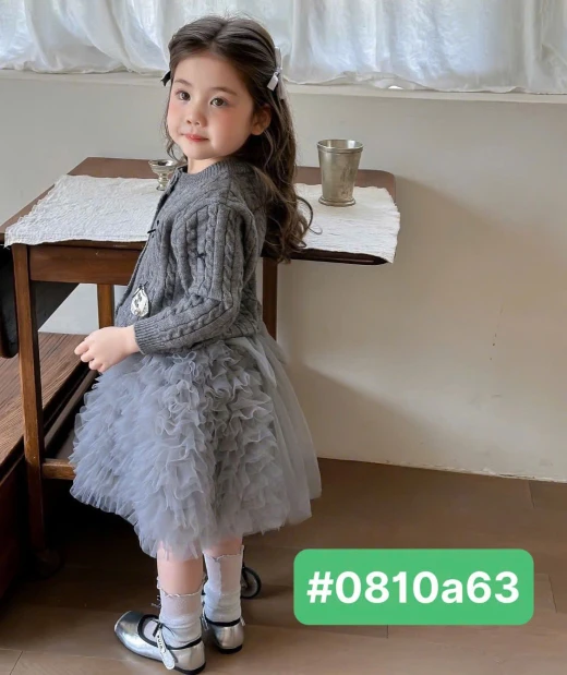 #0810a63 SÉT CARDIGAN LEN + CV TUTU XÁM CHERRYCOCO ✔Size : 80 – 140 🌸 giá áo khoác giá 168k chân váy giá 124k 🐬 chốt 8/10