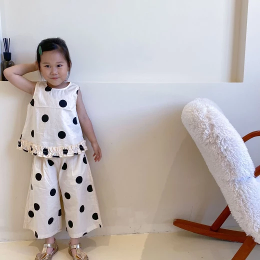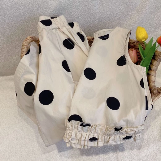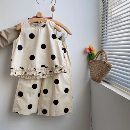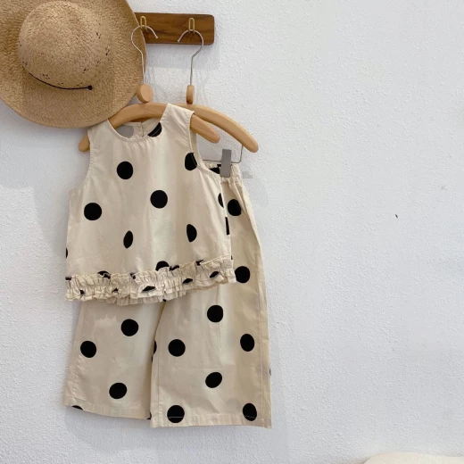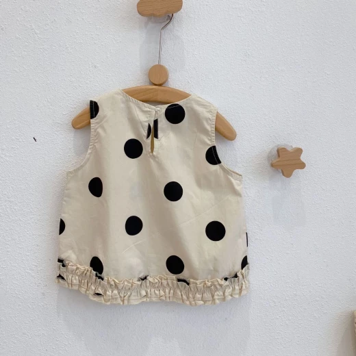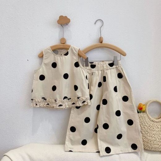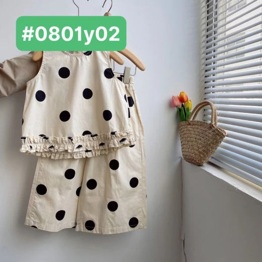 #0801y02 ❌ ❌ Set chấm bi cho bé họa tiết chấm bi không bao giờ lỗi mốt, tone màu be xinh xắn ✅ sz: 100-140 Giá: 166k chốt 8/1