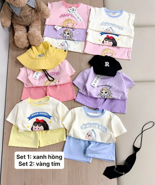 #2903p47 Hàng việt nam CÔNG CHÚA NHÍ LÊN ĐỒ XINH XỈU 🥹🫶 Set này đúng kiểu các bé mà nhìn là đòi mẹ mua ngay đây nàyy 😭 Form rộng rãi, mặc mát, in hình xinh yêu cực kỳ luôn Bé diện đi chơi, đi học hay ở nhà đều xinh hết nấc 💕 💥 D183 - Deal quá hời: #149k / set 2 bộ Mua 1 lần có luôn 2 outfit thay đổi cả tuần 😆 🌈 chốt theo set 1 hoặc set 2 ạ. Em ko tách lẻ màu của 2 set Set 1: xanh, hồng Set 2: vàng, tím Bảng sz Size 90: 7-9kg Size 100: 9-11kg Size 110: 11-14kg Size 120: 14-17kg Size 130: 17-20kg Size 140: 20-23kg Size 150: 23-25,26kg ☘️Giá: 115k/set 2b 🐬Chốt 29/3