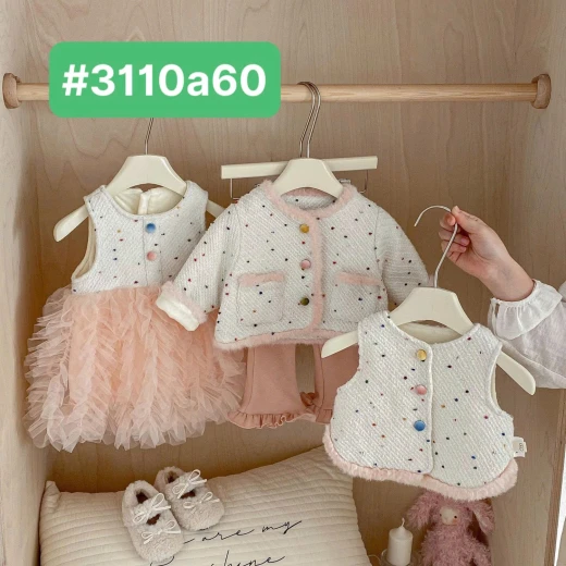 #3110a60 🌼 🌼 SET ĐỒ BÉ GÁI QCCC 🌼 🌼 Kiểu dáng hàn quốc đẹp sang. Áo khoác dạ #xxxk Váy phối ren #xxxk Gi lê #xxxk Quần ống loe #xxxk Sz: 73-120 Bảng sz tham khảo 73; 6-8kg 80: 8-10kg 90: 10-13kg 100: 12-16kg (hết quần) 110: 14-19kg 120: 16-21kg Giá: áo khoác : 196k gile 142k Váy 220k Quần: 114k Chốt 3110