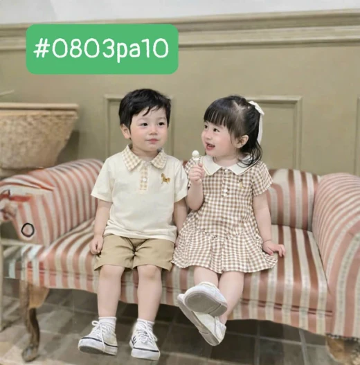 #0803pa10 🤎 SET ĐỒ ĐÔI BÉ TRAI – BÉ GÁI SIÊU XINH 🤎 Tone be – nâu nhẹ nhàng, nhìn là thấy vibe Hàn Quốc dễ thương 💕 ✨ Bé trai: Áo cổ phối caro + quần short kaki giặt mềm ✨ Bé gái: Váy caro xòe nhẹ tiểu thư ✔️ Chất cotton mềm mát, mặc hè cực thoải mái ✔️ Form xinh, dễ vận động ✔️ Anh em mặc đôi – chụp ảnh siêu yêu 📏 Size: 90: 7–9kg 100: 9–11kg 110: 11–14kg 120: 14–17kg 130: 17–20kg 140: 20–23kg 150: 23–25/26kg ☘️Giá: trai = gái = 99k 🐬Chốt 8/3