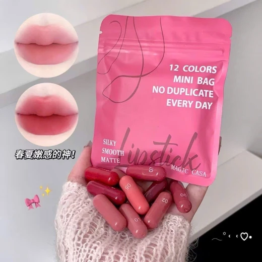 #0612a65 💄 Bà nào thích thử nhiều màu son như em thì rinh ngay ‼️ ‼️ Set son mini Magic Casa – 12 màu trong 1 túi này điiii. #xxkkk/ 12 màu 💋 kaka mỗi ngày một màu k lo trùng lun Son lì mịn môi nhưng không khô, lên màu xinh mê Thiết kế viên nang siêu cute, bỏ túi mang đi cực tiện Order ======== chốt 0612 giá 48k/1 set