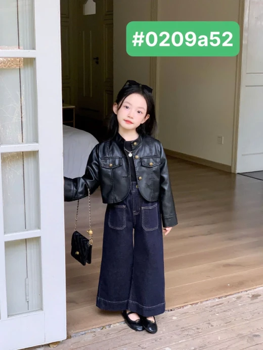 #0209a52 ❇️ SÉT THỜI TRANG ÁO DA 3 CHI TIẾT Size 90-150 🌸 giá Quần: 180k Áo da dáng ngắn: 223k Áo thun hở vai: 120k 🐬 chốt 2/9