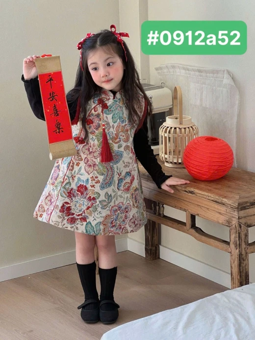 #0912a52 SET VÁY SƯỜN XÁM HOA GẤM BG Lỡ lạc vào mê cung đồ tết 2025 mê quá các bác ơi gom 1 lần để gái yêu diện luôn nè. Váy sườn xám hoa gấm xinh xắn #xxxk Áo giữ nhiệt phối ren #xxxk Sz: 90-140 Giá: áo 151k, váy 277k Chốt 0912