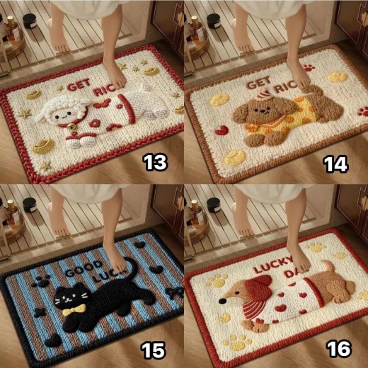 #1803p32 🛁 Thảm lau chân nhà tắm – xinh xắn & tiện lợi 🐻 #75kk/c , từ 2c #65k/c ✅ Thấm nước siêu nhanh – sàn luôn khô ráo ✅ Đế chống trượt an toàn, dùng yên tâm cho cả nhà ✅ Chất liệu mềm mại, êm chân – giặt nhanh, khô nhanh ✅ Hình hoạt hình dễ thương, decor phòng tắm cực ✔️Các mẫu đánh số ✔️Kt 40x60cm Giá: 36k Chốt 1803