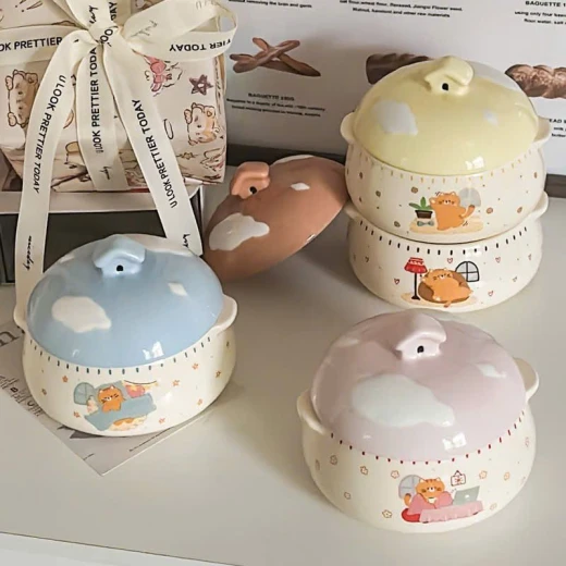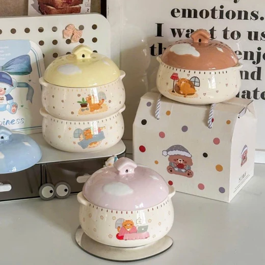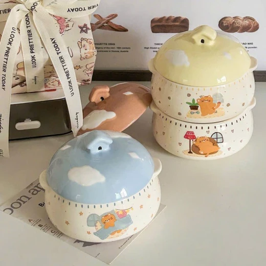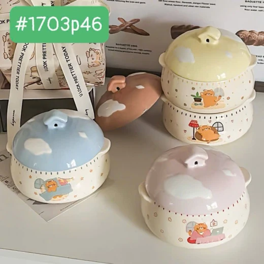 #1703p46 Thố hấp trứng,yến....có tay cầm bằng gốm sứ ,có nắp đậy. -dung tích 350ml -4 màu giá: #130k/c 🌸 giá 80k/c 🐬 chốt 17/3