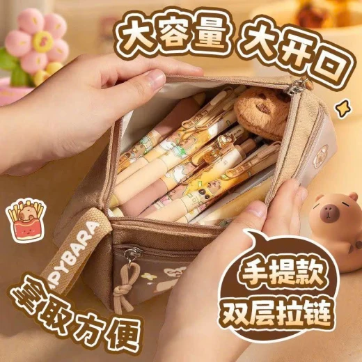 #1803p36 ✏️ Túi bút Capybara siêu xinh #75k/c , từ 2c #65k/c 🐹 Họa tiết Capybara dễ thương, nhìn là mê 📐 Thiết kế gọn gàng nhưng đựng được rất nhiều bút Một chiếc túi bút vừa xinh vừa tiện, chắc chắn sẽ làm góc học tập thêm đáng yêu đó nha! 💕2 màu: nâu ,be Giá: 36k Chốt 1803