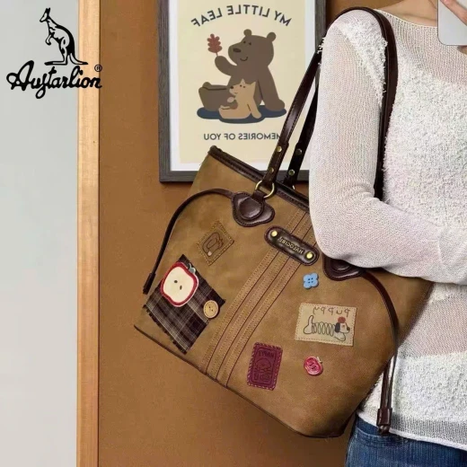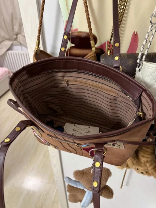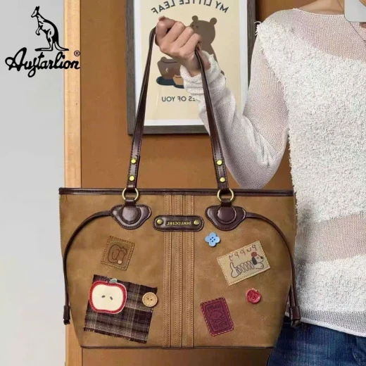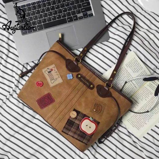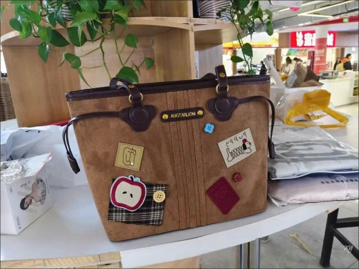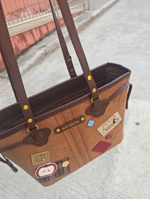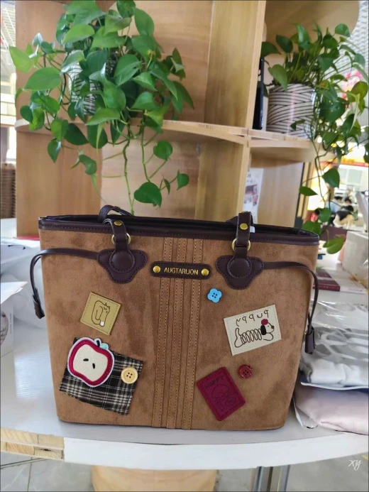 #0312a69 TÚI ĐEO VAI HÌNH DỄ THƯƠNG Túi tote dáng to bản phong cách vintage. Mặt túi được đính nhiều patch hình thêu siêu đáng yêu: trái táo, tem thư, nút áo… nhìn là thấy mood “đi học – đi làm – đi chơi” đều hợp. 🌸 giá 185k 🐬 chốt 3/12