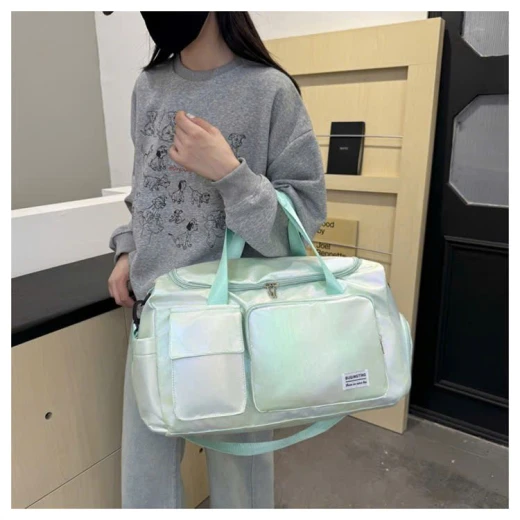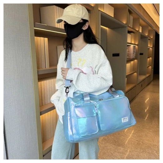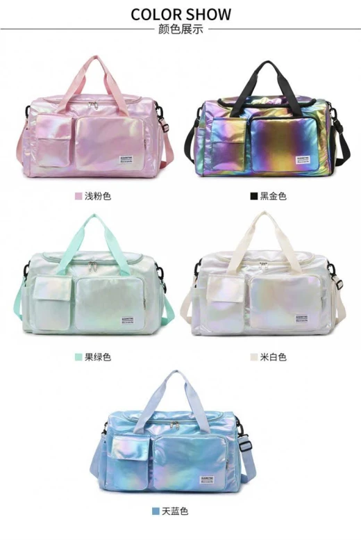 #2811a69 TÚI DU LỊCH PHONG CÁCH HÀN QUỐC HOLOGRAM Túi du lịch nữ phong cách Hàn Quốc với chất liệu hologram bắt sáng, hiện đại và nổi bật. 5 màu đánh số ✅Kt em để ở ảnh trong bài 🌸 giá 133k 🐬 chốt 28/11