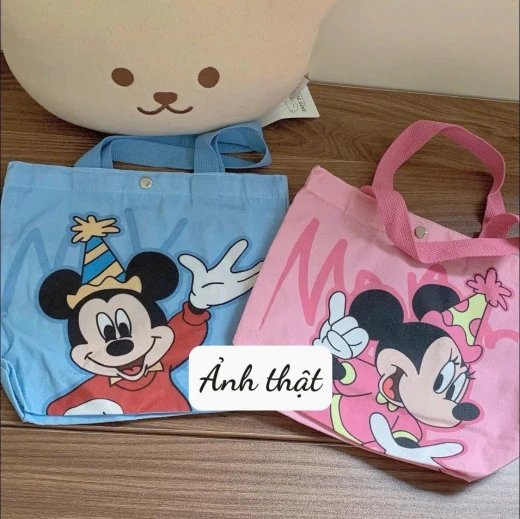 #2103p39 Túi minnie / mickey xinhh lắm nè các chị ơi , túi tote nhỏ gọn đựng được nhiều ah nha 🥰🥰 E để đth dây sạc bánh kẹo lặt vặt vẫn thoải mái . Mang đi đâu cx gọn , bé hay mẹ cầm đều iuu KT : 27*22*8cm Mang đi học thêm cũng được ạ , có nút bấm tiện nhé 3 màu : xanh , trắng , hồng Chỉ #45k /1 cái Giá: 25k/c Chốt 2103