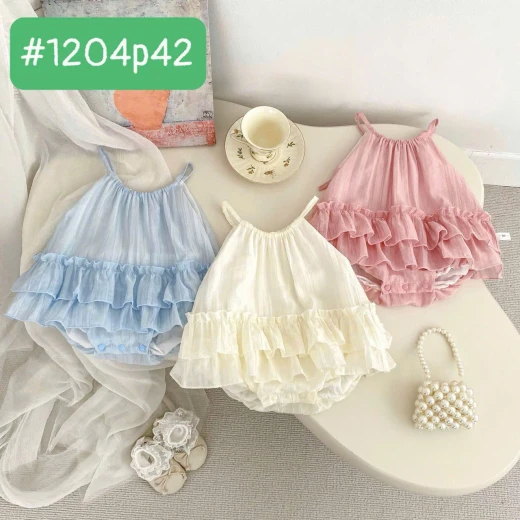 #1204p42 VÁY 2 DÂY CỔ YẾM SZ NHÍ Thiết kế cổ yếm xinh xắn, mặc lên cực kỳ đáng yêu Chất đũi mềm nhẹ, thoáng mát – bé mặc mát cả ngày 3 màu: xanh, hồng, be ✅sz 66-90 66: 5-7kg 73: 7-9kg 80: 9-11kg 90: 11-13kg 🌸 giá 165k 🐬 chốt 12/4