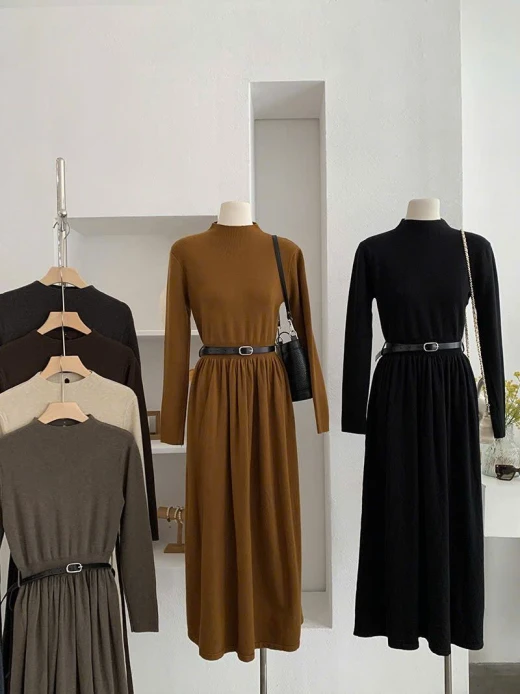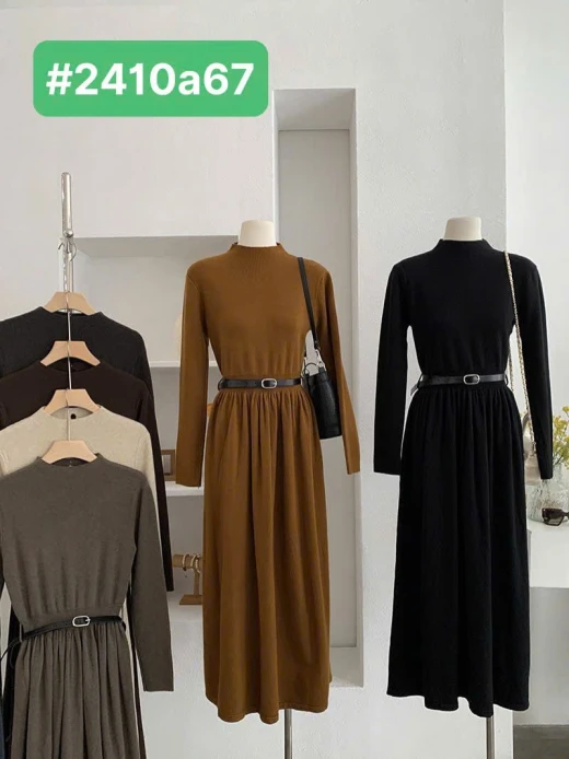 #2410a67 VÁY DÀI THU ĐÔNG BASIC Thanh lịch- sang trọng Mùa đông các chị gái nên sắm về 1 chiếc mặc ạ 6 màu đánh số ✅Freez 40-67kg 🌸 giá 290k 🐬 chốt 24/10