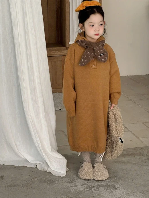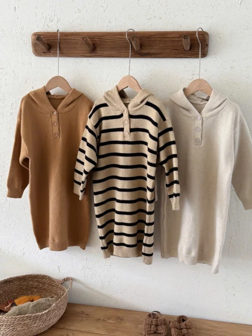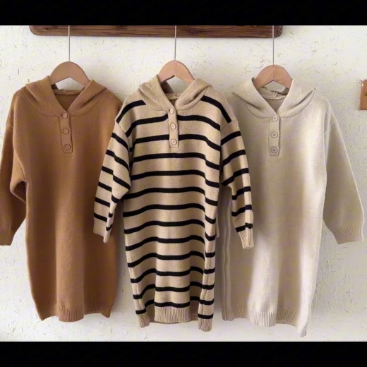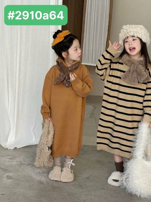 #2910a64 VÁY LEN DÁNG SUÔNG CÓ MŨ #xxxk.c hàng qccc nha các mom 3 màu: Be, Cam, kẻ Sz: 90-150 Giá: 218k Chốt 2910