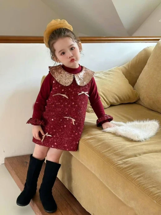#1512a63 VÁY SEQUIN ĐÍNH NƠ XINH XẮN Váy lót nhung #xxxk/c Áo xxxk/c Mùng 2 lấp lanh cho gái iuuuuu. hàng chuẩn hàng xịn xò bao xinh xắn Sz: 80-130 Bảng siz tham khảo 80: 8-11kg 90: 11-13kg 100: 13-15kg 110: 15-17kg 120: 17-20kg 130: 20-25kg Giá: váy 258k. áo 139k Chốt 1512