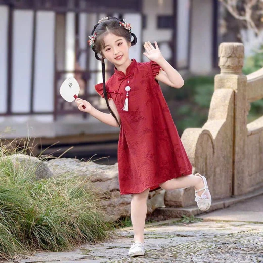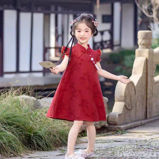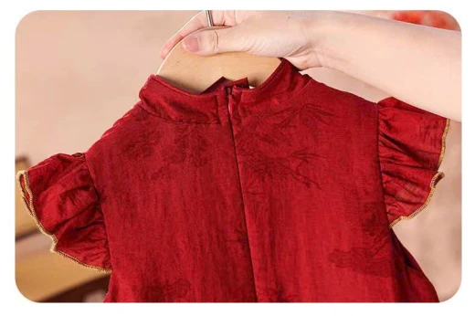 VÁY SƯỜN XÁM ĐỎ CHO BÉ GÁI