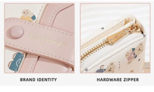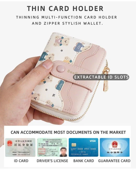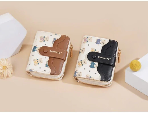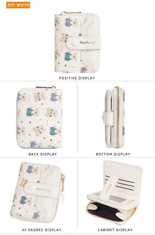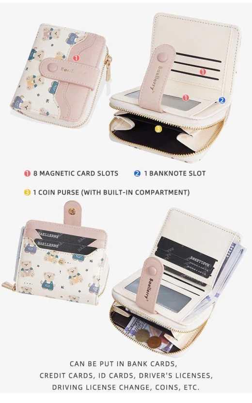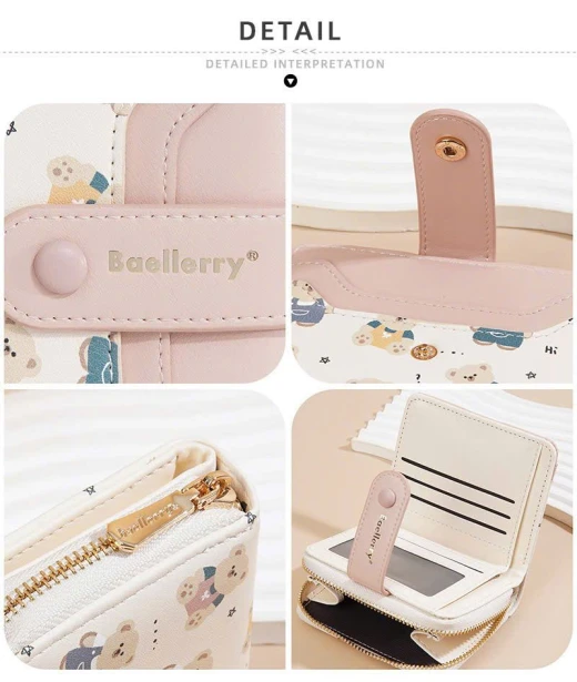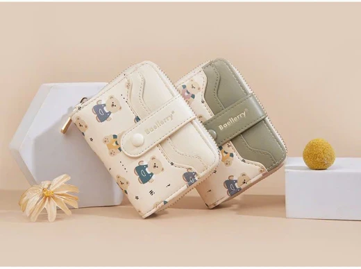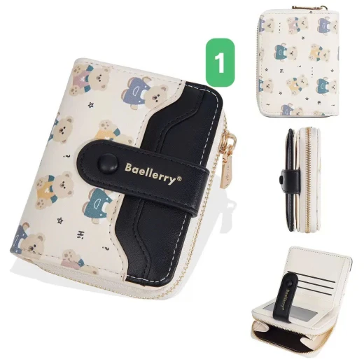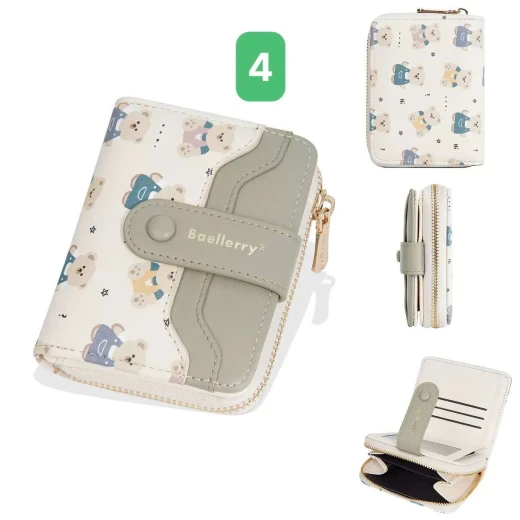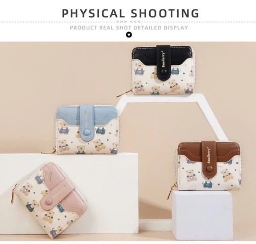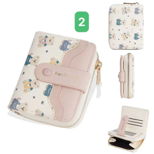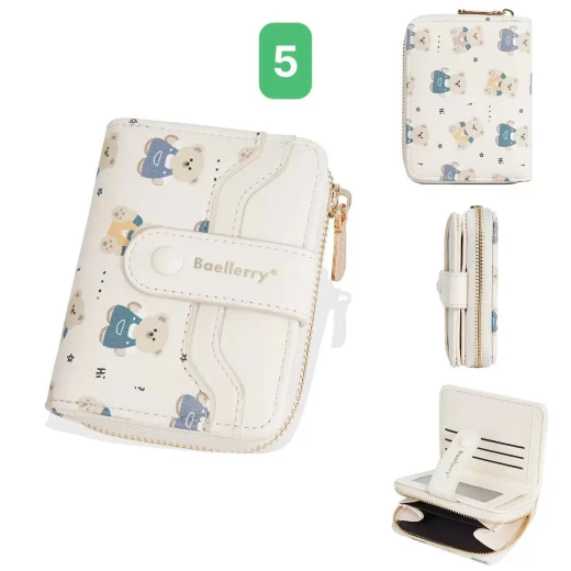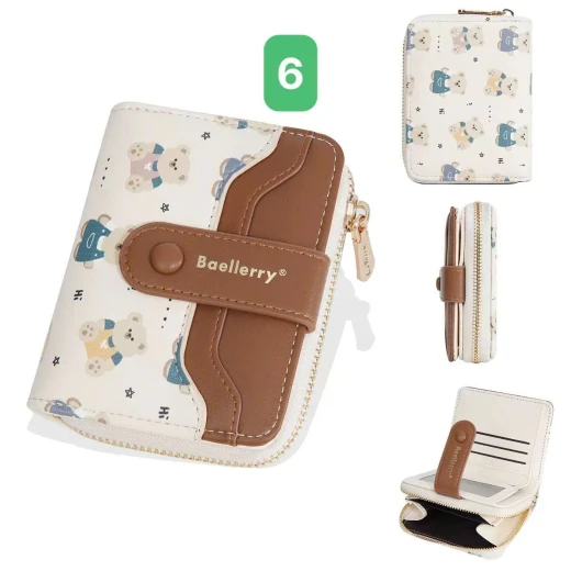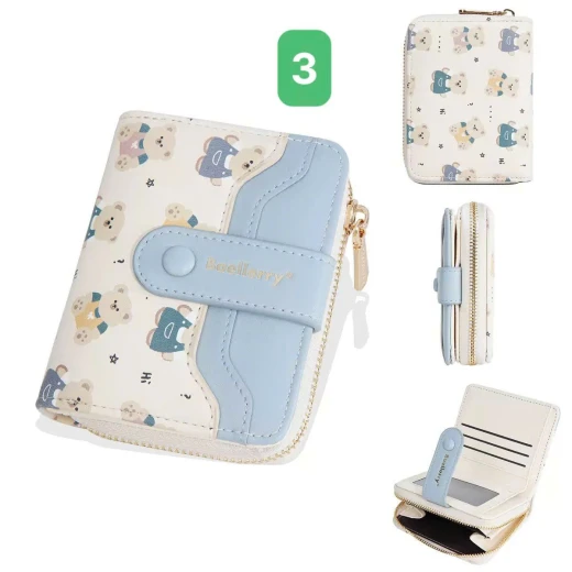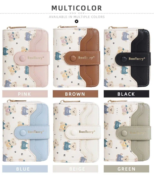 #0712a56 VÍ NGẮN BAELLERRY HỌA TIẾT GẤU Thiết kế nhỏ gọn, tiện lợi cất trong túi xách hoặc cầm tay. Chất da PU mềm mịn, đường may chắc chắn, họa tiết gấu đáng yêu tạo điểm nhấn. 6 màu đánh số ✅kt dưới ảnh 🌸 giá 85k 🐬 chốt 7/12