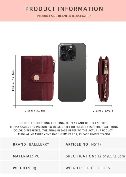 #1503p43 VÍ NỮ BAELERRY MINI Ví nữ Baelerry thiết kế nhỏ gọn, phong cách thanh lịch và hiện đại. Chất liệu mềm mại, đường may chắc chắn, khóa bấm kim loại tinh tế. ✔8 màu đánh số 🌸 giá 83k 🐬 chốt 15/3